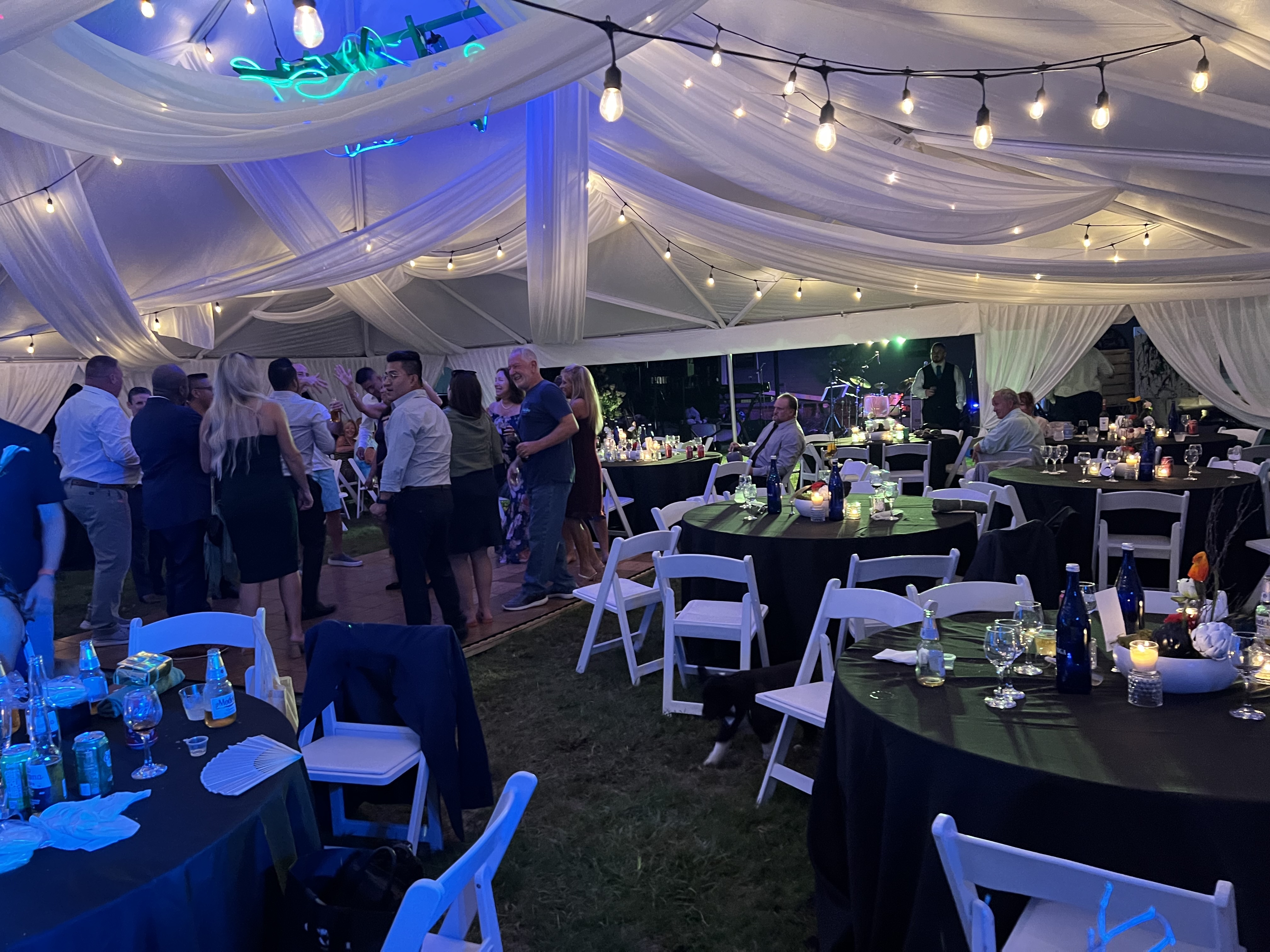 Our wedding lighting options will exceed your expectations. We can light your tent in ways that will make your guests feel like they're entering a grand banquet hall instead of an event tent. Here’s a peek at what we offer: